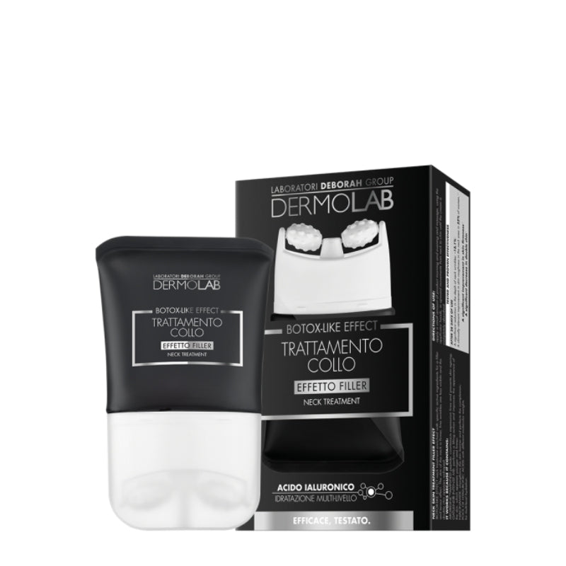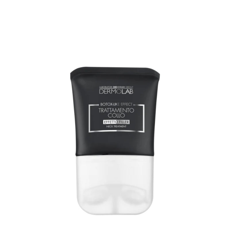 Trattamento collo BOTOX-LIKE EFFECT arricchito con attivi specifici che donano un effetto filler e tensore. La pelle del collo è più compatta, le rughe sottili sono meno visibili e il doppio mento appare rimodellato