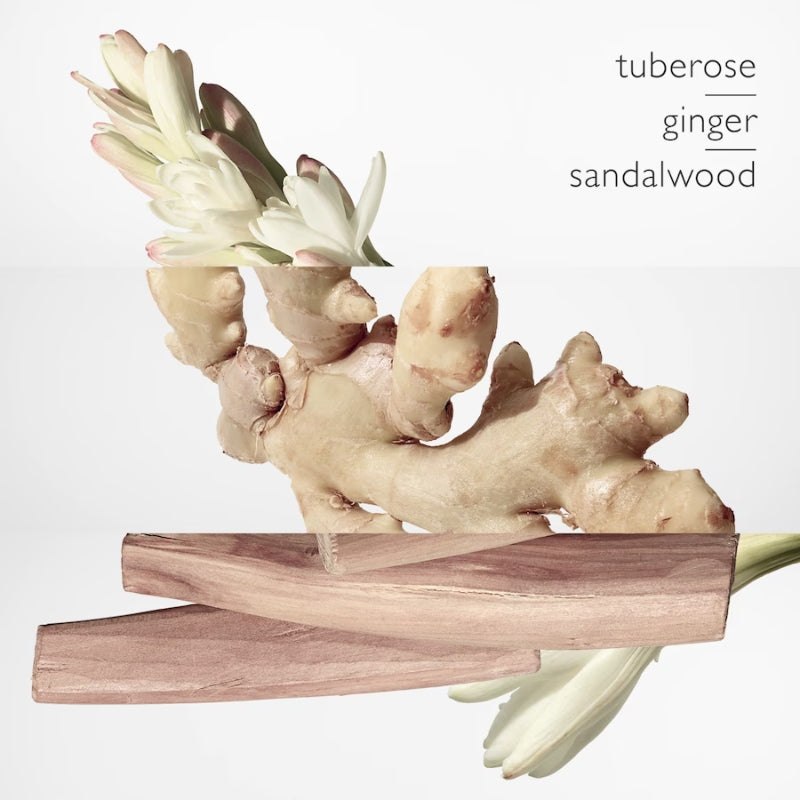 Eau de Parfum floreale e speziata che esprime il suo lato impertinente con la freschezza dello zenzero, la leggerezza della tuberosa e le note di latte del sandalo.